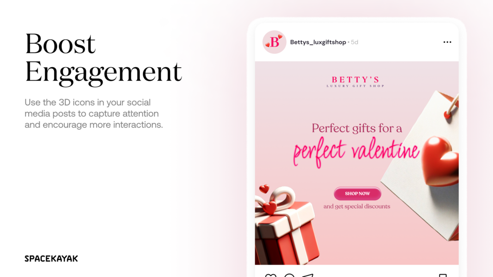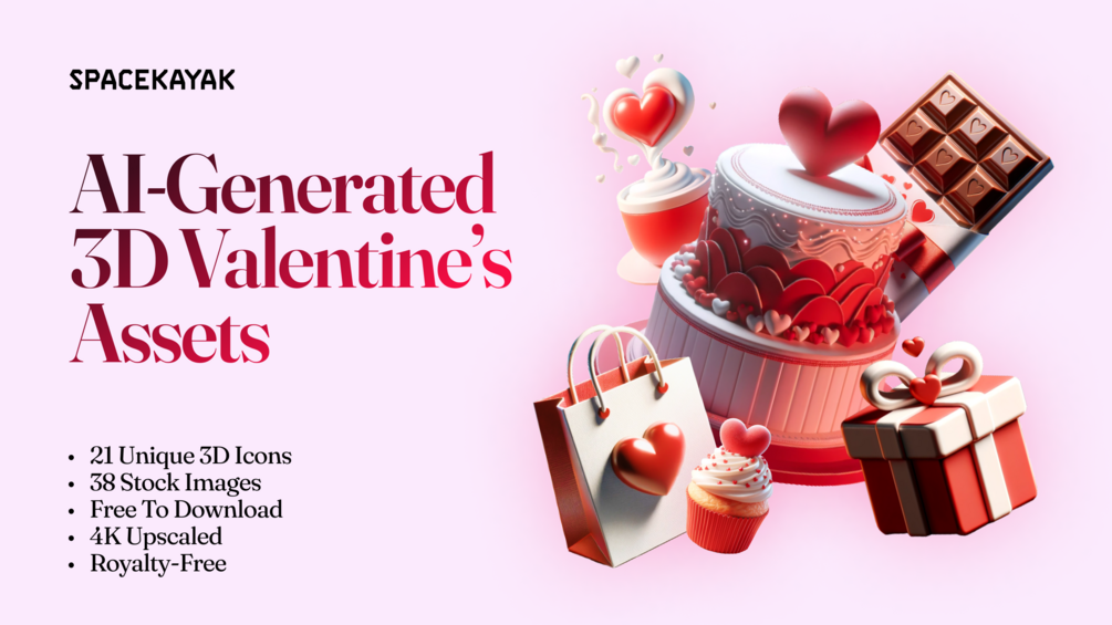 Celebrate Valentine's Week 2024 with our FREE 3D icon set, lovingly crafted at Spacekayak 3D & AI Labs. From Rose Day to Valentine's Day, our icons are here to add a spark of gratitude, love, and joy to your designs.